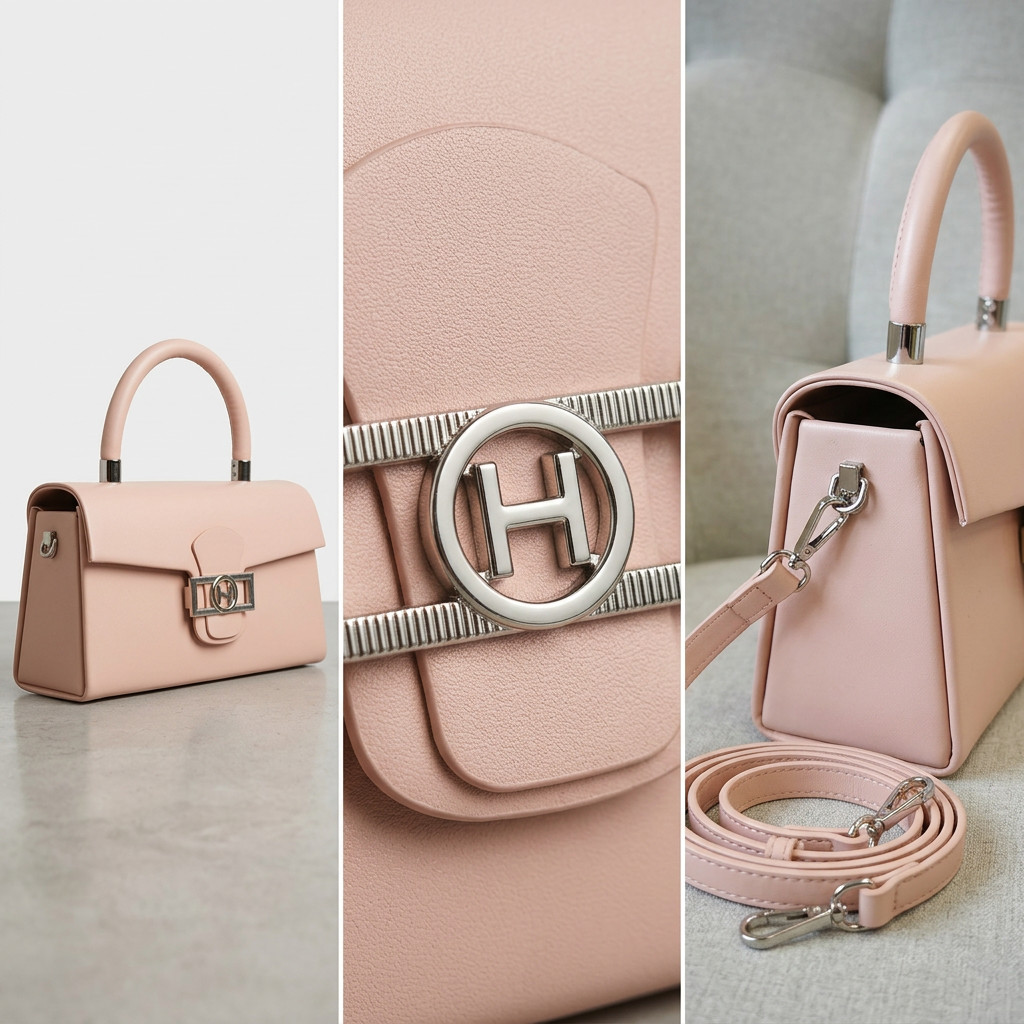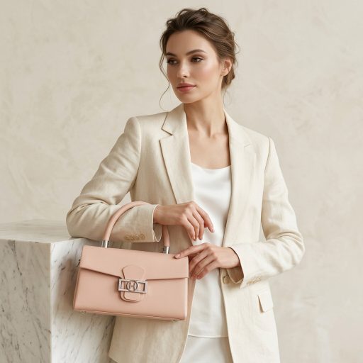Ez az elegáns kézitáska a klasszikus nőies vonalakat modern, letisztult részletekkel ötvözi, így tökéletes választás alkalmakra és stílusos hétköznapokra egyaránt. A finom púderes árnyalat és a hangsúlyos fém díszítés kifinomult, mégis divatos megjelenést biztosít.