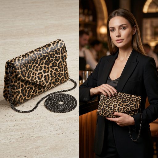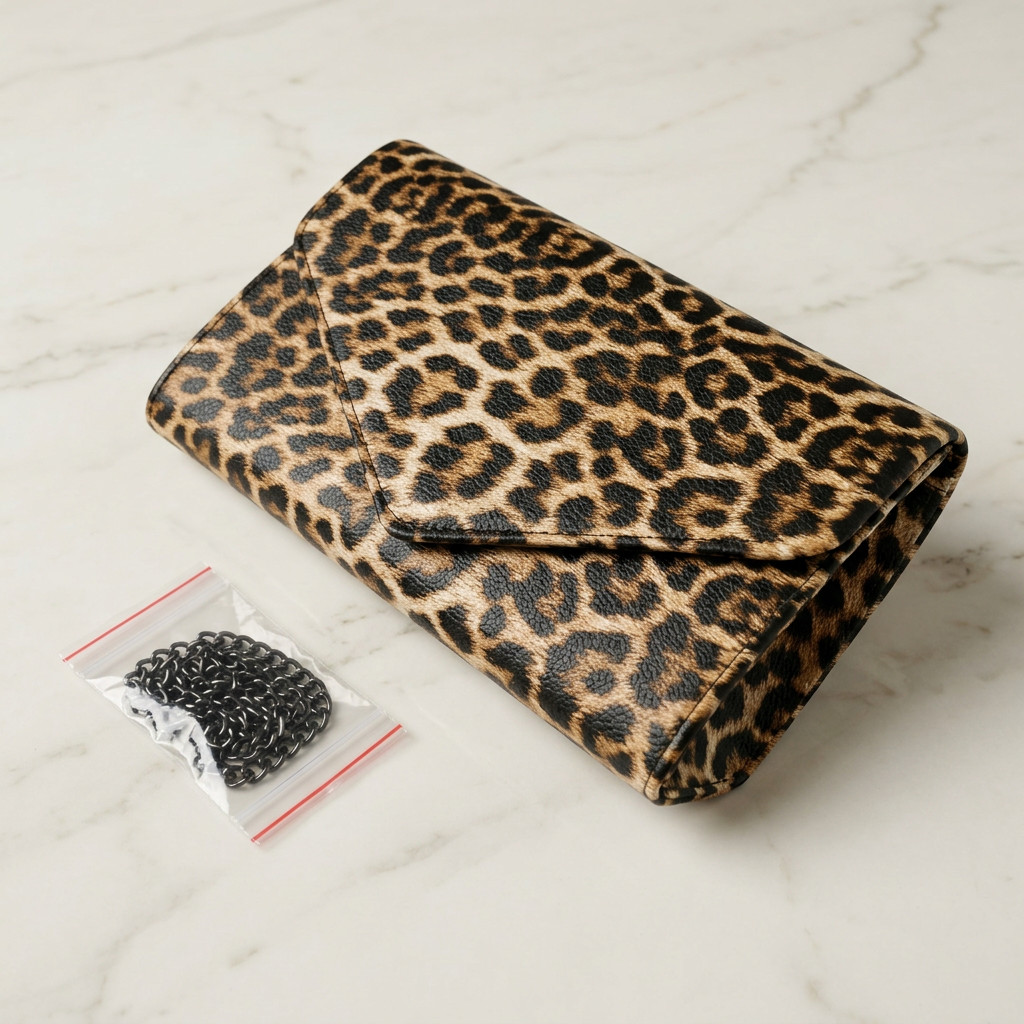 Ez az alkalmi táska a klasszikus boríték fazont egy merész, divatos leopárd mintával ötvözi, így garantáltan kitűnsz vele a tömegből. A strukturált kialakítás elegáns tartást ad, míg a mintás felület egyedi, karakteres megjelenést biztosít.