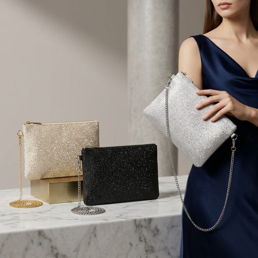 Ez a letisztult, mégis látványos alkalmi táska tökéletes választás, ha egy kis ragyogást szeretnél vinni az outfitedbe. A finoman csillogó felület elegáns hatást kelt, miközben a praktikus kialakítás biztosítja a kényelmes használatot.