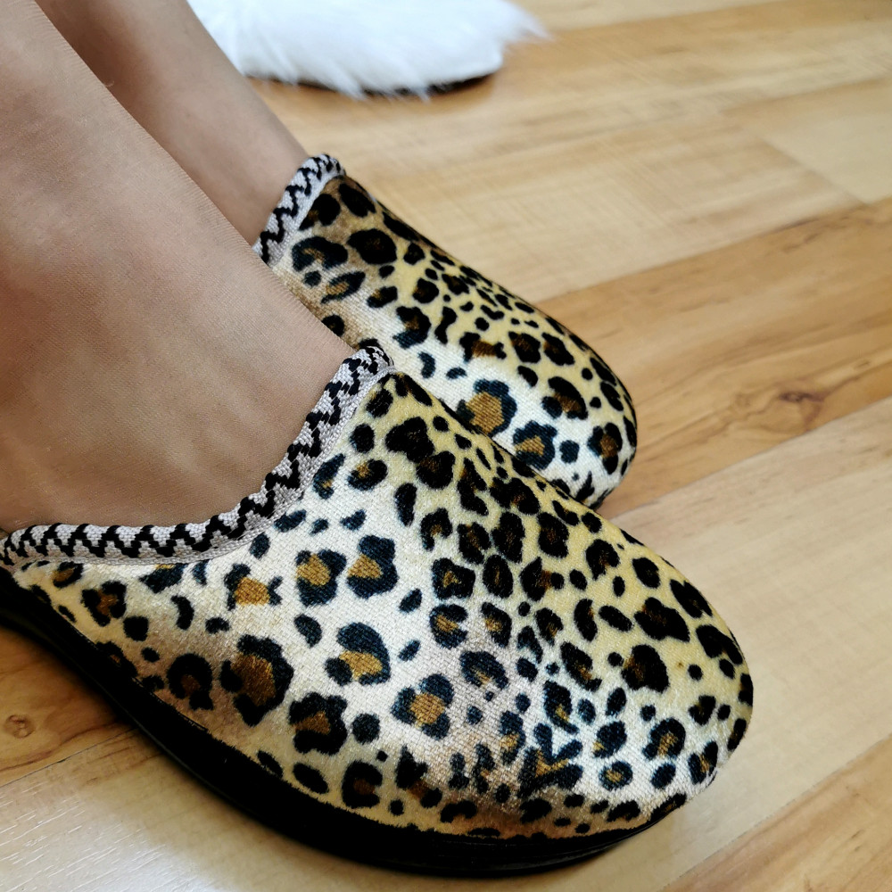 Barna ocelot mintás melegpapucs