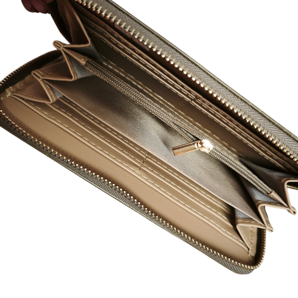 Ez a pénztárca ideális választás azok számára, akik a letisztult eleganciát ötvöznék a funkcionalitással. Közepes méretének köszönhetően könnyen elfér kézitáskában, ugyanakkor minden szükséges kártya, irat és apró kényelmesen elhelyezhető benne.