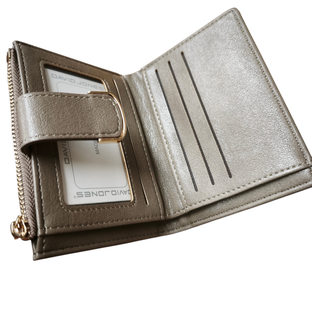 Elegáns, kompakt és praktikus – ez a David Jones pénztárca tökéletes választás mindennapi használatra. Letisztult, modern dizájnja bármely táskába illik, miközben a belsejében átgondolt, jól rendszerezett tárolóhelyek segítik a kényelmes használatot.