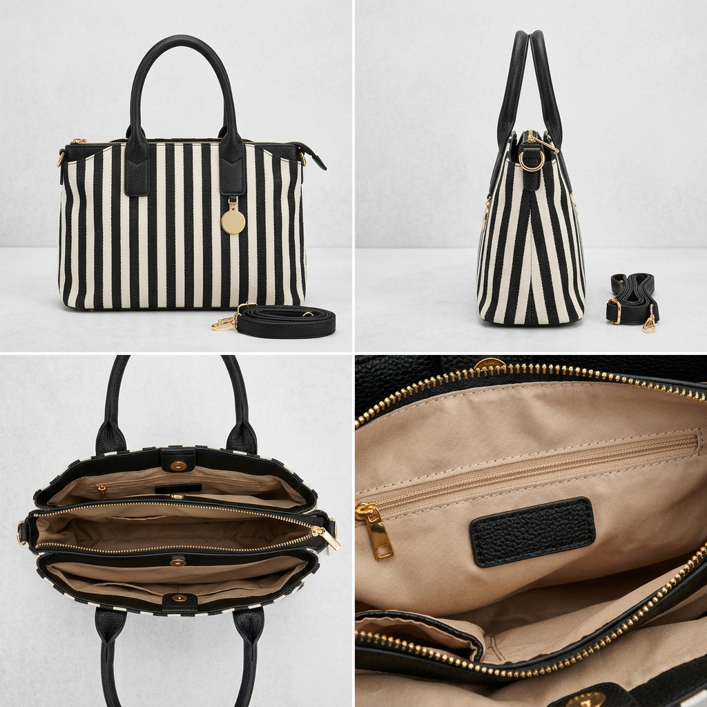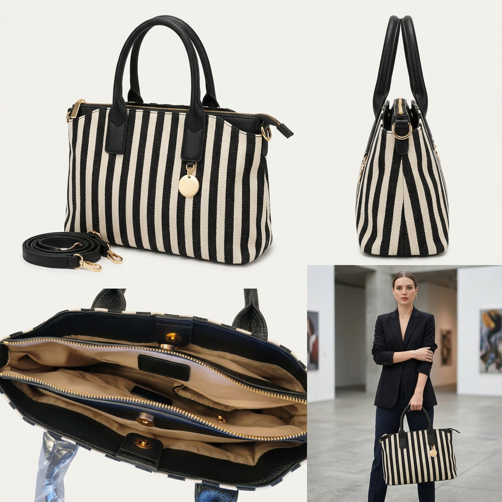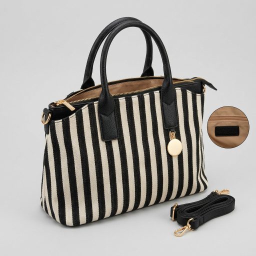 A fekete-bézs csíkos minta az egyik legnagyobb tavaszi-nyári trend, amely friss, energikus és nőies megjelenést ad. Az ilyen csíkos táskák népszerűsége jelentősen nőtt az utóbbi időben, mert egyszerre látványosak és jól kombinálhatók