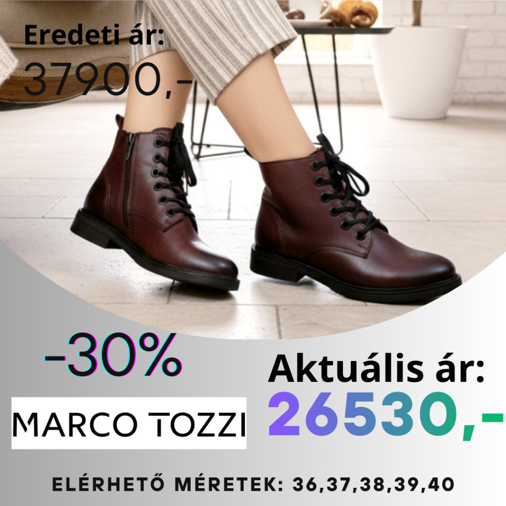 A Marco Tozzi új kollekciójának egyik legnőiesebb darabja ez a mélybordó színű, bőr női bokacipő.