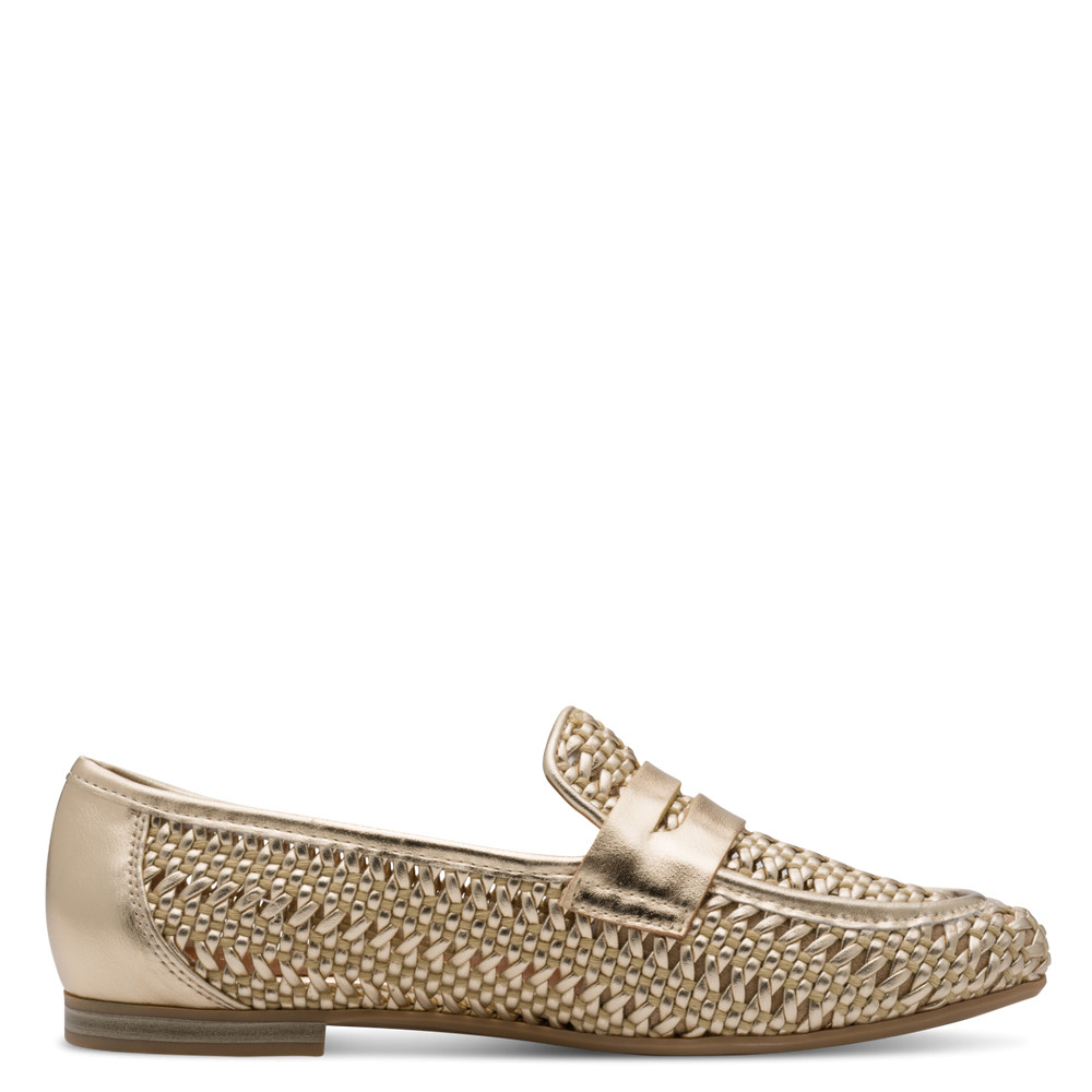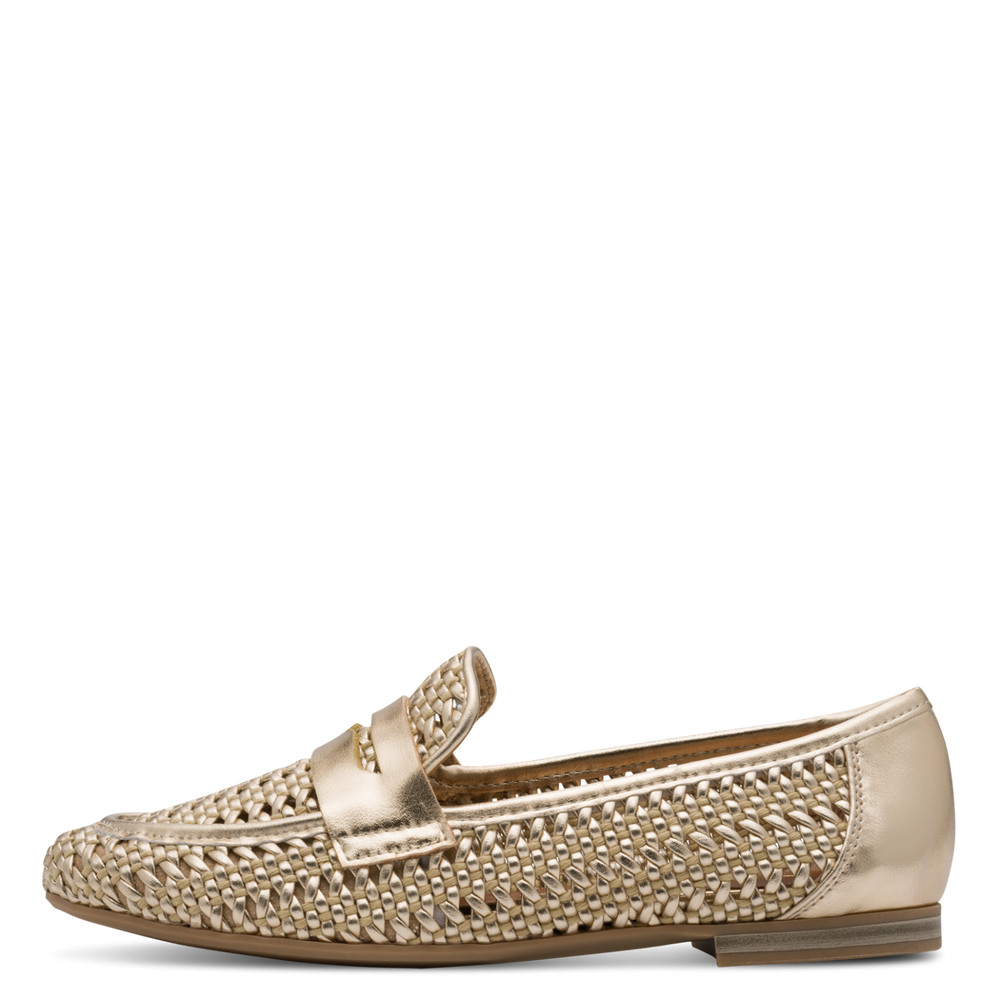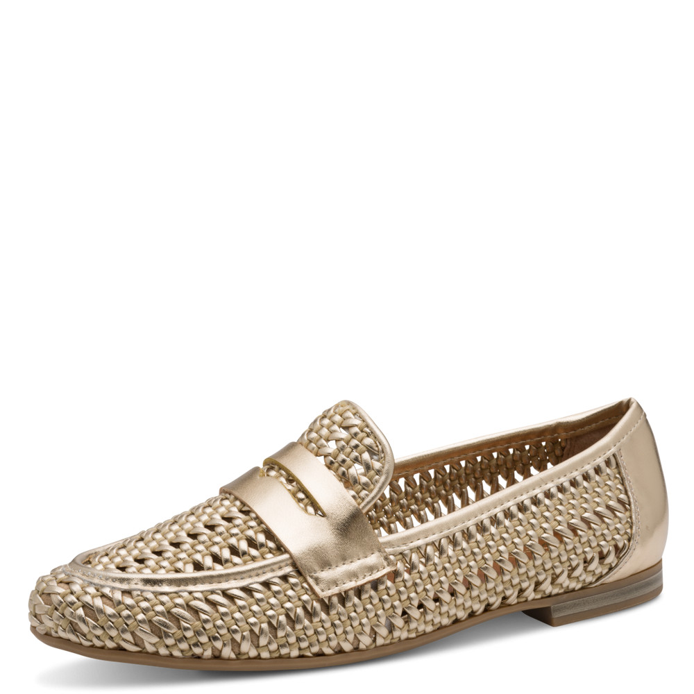 Ez a Marco Tozzi mokaszin a klasszikus eleganciát ötvözi a modern, könnyed nyári megjelenéssel. A finoman fonott hatású felsőrész különleges textúrát ad a cipőnek, miközben légies viseletet biztosít. Az elöl elhelyezett letisztult pántos díszítés diszkrét, mégis nőies hangsúlyt ad a modellnek.