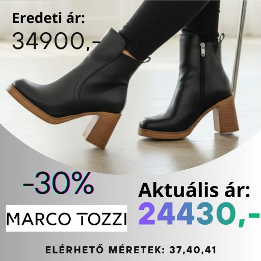 Elegancia minden lépésnél – ez a fekete **Marco Tozzi bokacsizma** tökéletes választás a modern nő számára, aki nem akar kompromisszumot kötni stílus és kényelem között.