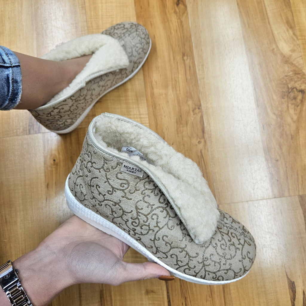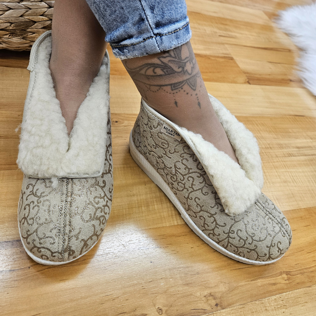 Téli papucs, amelynek nemcsak belül van birkagyapjú szigetelése, hanem kívülről is, tartós gyapjú filc alkotja. A talp kivételével ez a papucs teljes egészében légáteresztő, könnyű és meleg birkagyapjúból készült,