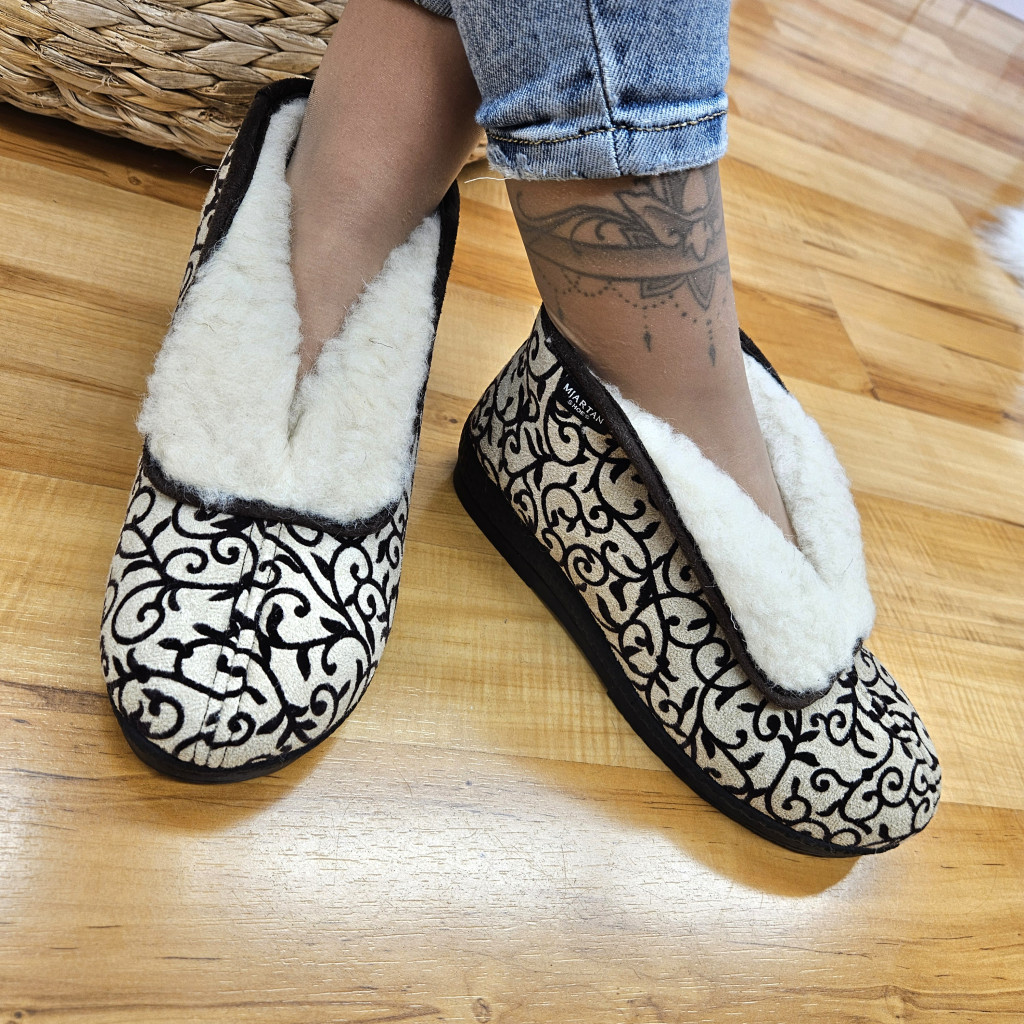 Téli papucs, amelynek nemcsak belül van birkagyapjú szigetelése, hanem kívülről is, tartós gyapjú filc alkotja. A talp kivételével ez a papucs teljes egészében légáteresztő, könnyű és meleg birkagyapjúból készült,