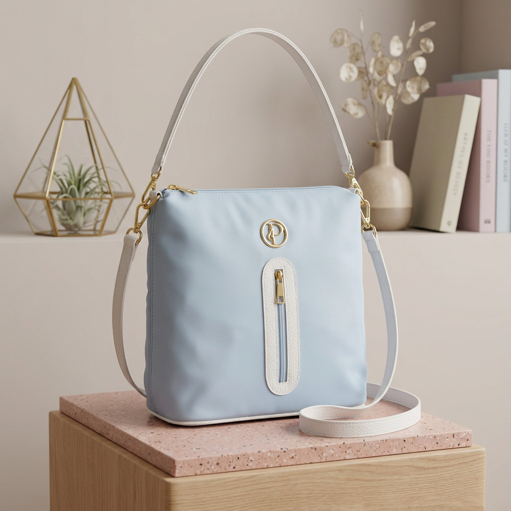 A Prestige női váll- és oldaltáska letisztult formájával és friss színvilágával tökéletes választás a stílusos hétköznapokra. A világos, pasztell árnyalat modern és nőies megjelenést biztosít, amelyet az aranyszínű logó és fém részletek elegáns módon egészítenek ki.
