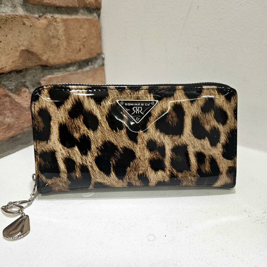 Ez a látványos, leopárdmintás Romina & Co pénztárca tökéletes választás azoknak, akik kedvelik az egyedi, extravagáns stílust, de nem szeretnének lemondani a praktikusságról sem. Fényes felületének és ikonikus háromszög logójának köszönhetően igazán divatos kiegészítő, amely bármely öltözékhez különleges megjelenést kölcsönöz.