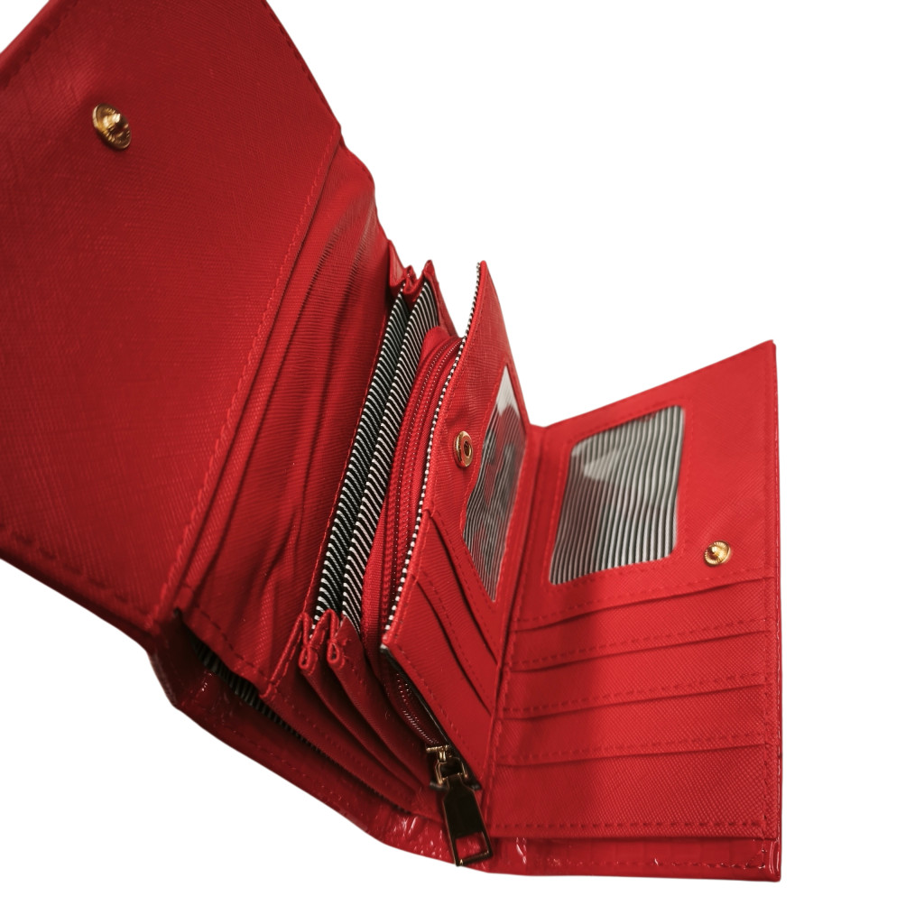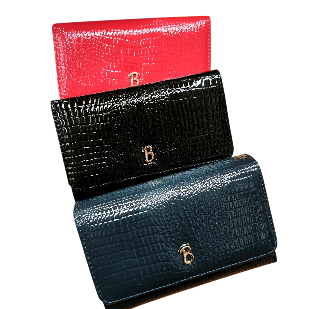 Ez a modern és nőies pénztárca a krokodilbőr mintázatának eleganciáját ötvözi a praktikummal. Három stílusos színben – piros, fekete és sötétkék – elérhető, így könnyedén megtalálod a hozzád leginkább illőt. Letisztult formája és aranyszínű “B” díszítése igazi prémium hatást kelt.