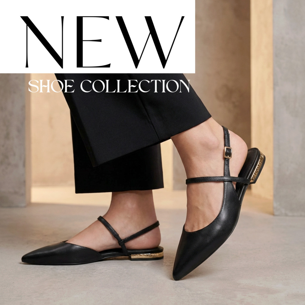 A valódi bőr felsőrész puha tapintású és kényelmes viselet, az állítható sarokpánt pedig stabil tartást ad. Az alacsony, arany díszítésű sarok különleges, mégis visszafogott luxusérzetet kölcsönöz a modellnek.