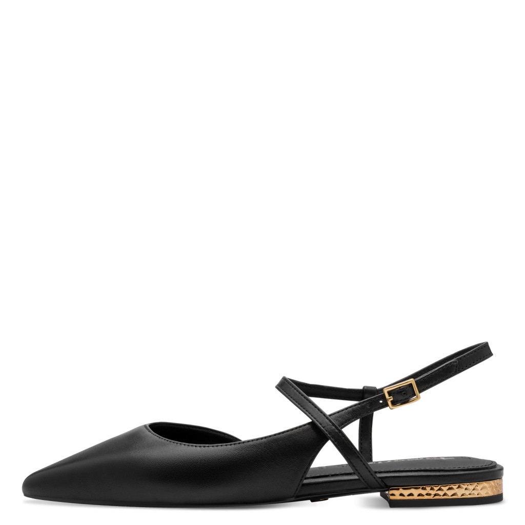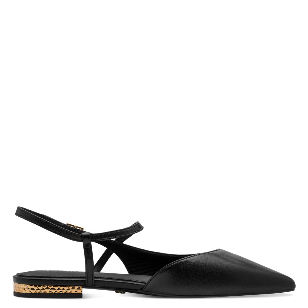 Ez a Tamaris bőr sling a letisztult nőiesség tökéletes megtestesítője. A finoman hegyes orr optikailag nyújtja a lábat, míg a karcsú pántos kialakítás könnyed, elegáns megjelenést biztosít.