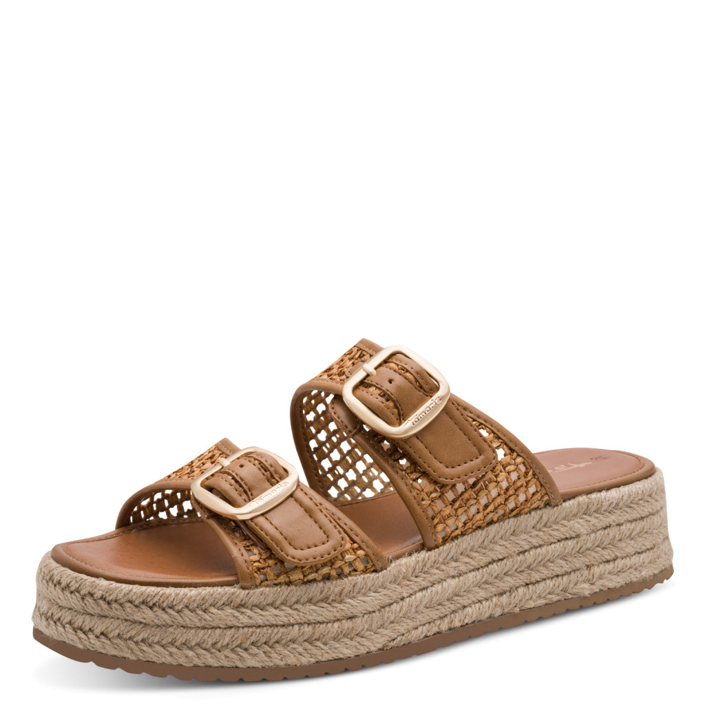 Ez a Tamaris női papucs a nyári könnyedség és a divatos megjelenés tökéletes kombinációja. A természetes hatású, fonott felsőrész és a karakteres csatok igazán különleges, mégis könnyen hordható darabbá teszik.