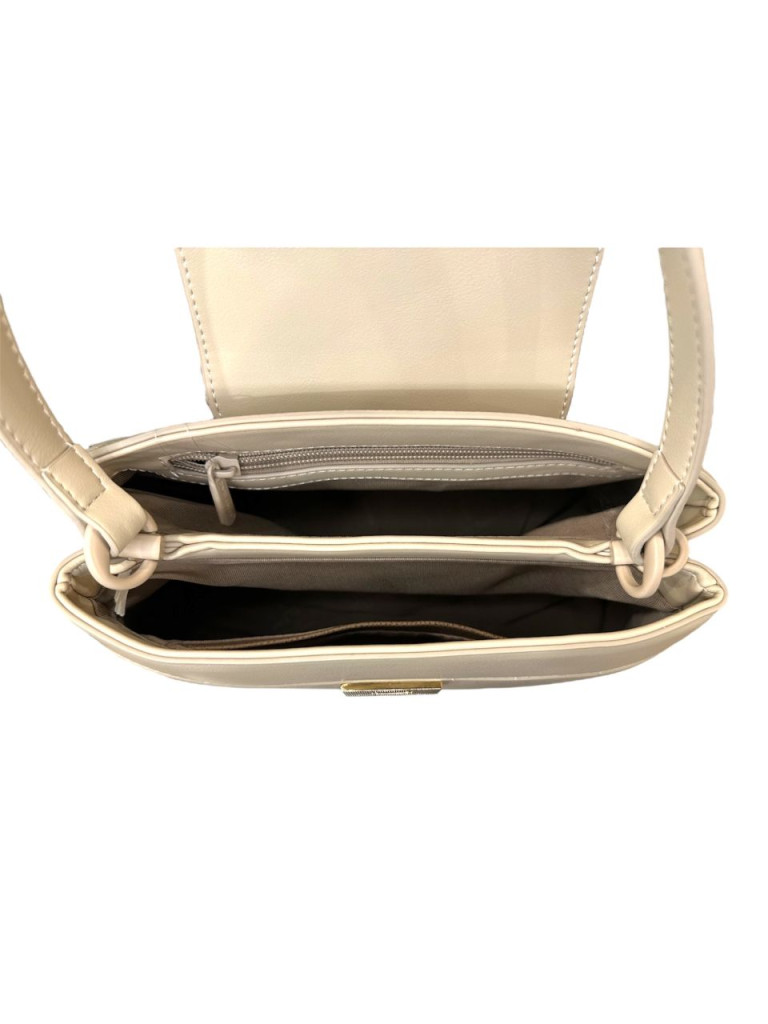 A táska prémium hatású, finoman texturált műbőr felületet kapott, amely elegáns krémszínben jelenik meg. Modern formája és a letisztult vonalvezetés harmonikusan ötvözi a klasszikus nőiességet és a mai trendeket. A ráhajtható fedél még kifinomultabbá teszi, miközben biztonságosan védi a táska tartalmát.