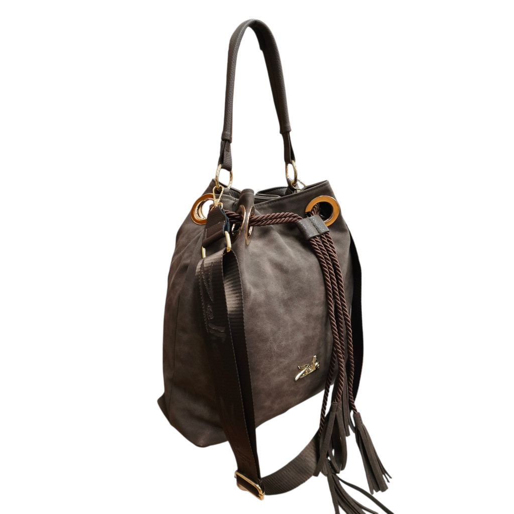 A Zellia elegáns, mégis karakteres darabja tökéletes választás a mindennapokra. A modern fazont a letisztult vonalvezetés és a látványos aranyszínű fém karikák, valamint a dekoratív zsinóros húzóka teszik különlegessé. A puha tapintású, strukturált anyag és az arany logó elegáns megjelenést biztosít.