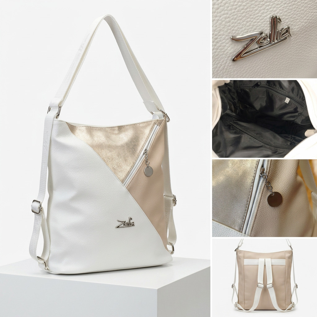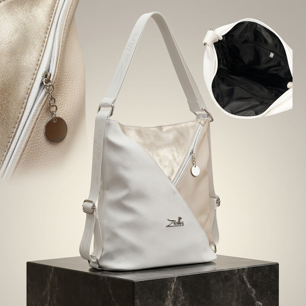 Ez a Zellia táska a praktikus mindennapok és a nőies elegancia tökéletes találkozása. Az átalakítható kialakításnak köszönhetően könnyedén viselhető válltáskaként vagy hátizsákként, így mindig az aktuális helyzethez igazíthatod.