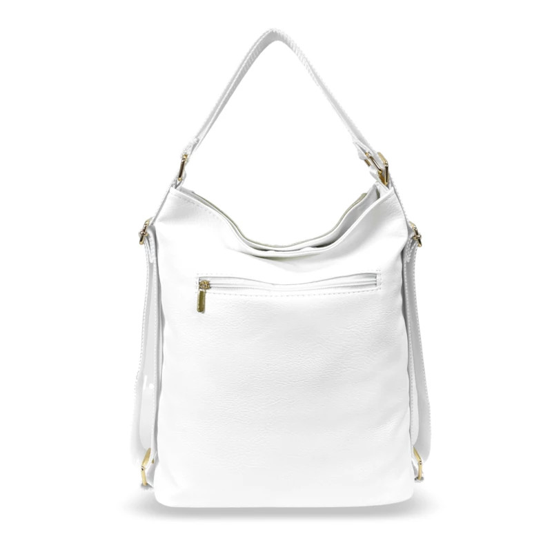 A modell különlegessége a fehér és arany kombinációja, amely friss, letisztult és mégis látványos megjelenést ad. A strukturált fazon jól tart, miközben a puhább anyag kényelmes viseletet biztosít. A cipzáras fő rekesz mellett több praktikus zseb segíti a rendszerezést, így minden fontos holmid kéznél lesz.
