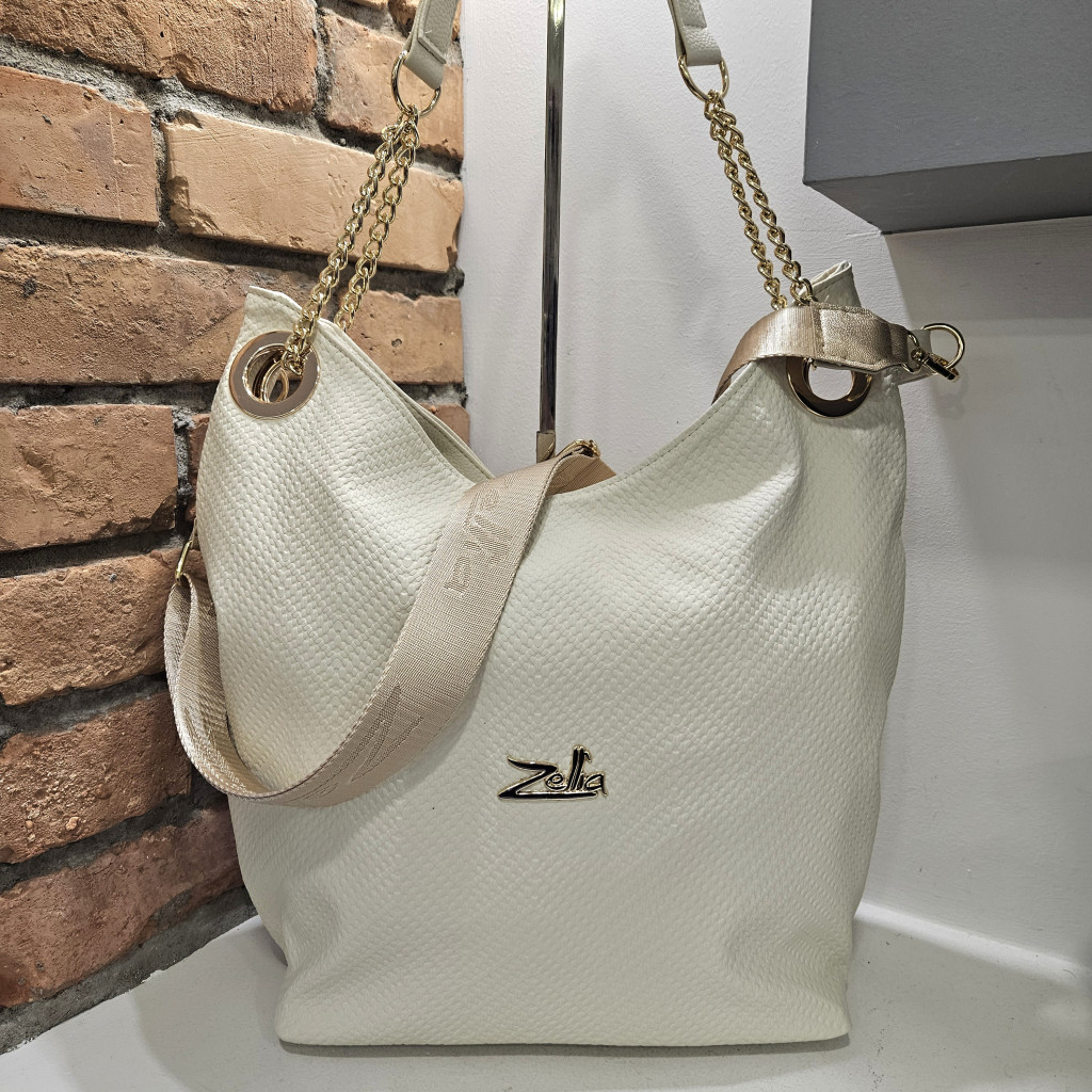 Lépj ki stílusosan a hétköznapokból ezzel a kifinomult, nagyméretű Zellia válltáskával! A táska modern, letisztult formavilága és a különleges arany láncos pánt díszítés egyszerre teszi elegánssá és karakteressé – tökéletes választás munkába, városi sétára vagy akár alkalmi megjelenéshez is.