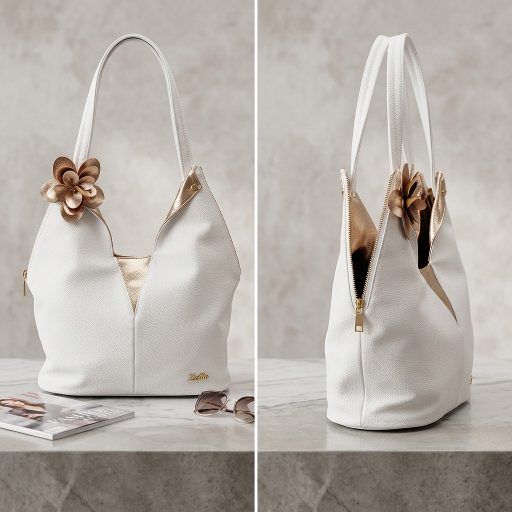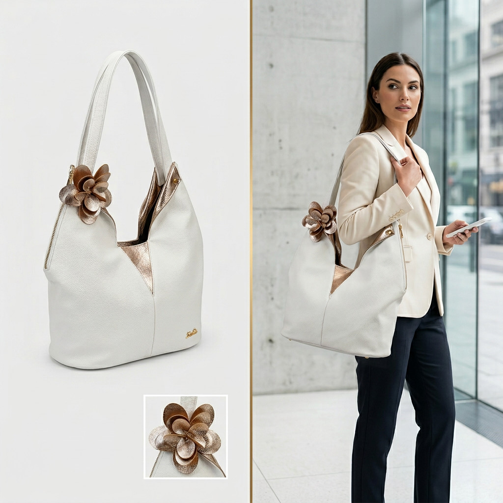 Ez a Zellia válltáska a nőies elegancia és a praktikus mindennapi használat tökéletes kombinációja. A letisztult, lágy esésű forma kényelmes viseletet biztosít, miközben a különleges virág díszítés egyedi karaktert ad a táskának.